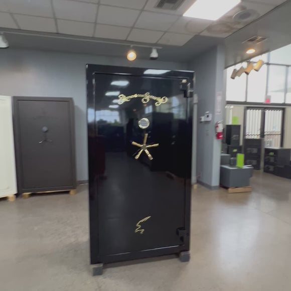 This Used Amsec BF7240 Gun Safe Measures 71.5"x40"x26", Weighs 1305 Lbs and has a 90 min Fire Rating. It comes equipped with an Electronic Lock, Door Organizer and a Mirror Back. Can Fit up to 42 Long Guns. Made in USA.