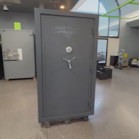 This Used Champion Safe Guard GR45 Measures 72"x40"x26", Weighs 810 lbs and has a 60 min Fire Rating. It comes equipped with a mechanical dial lock (Can be upgraded to electronic for extra $150) , LED Lights and a Door Organizer. 12 Gauge Body and 3/8" Plated Door Edge. Can fit up to 46 Long Guns. Made with US Steel.