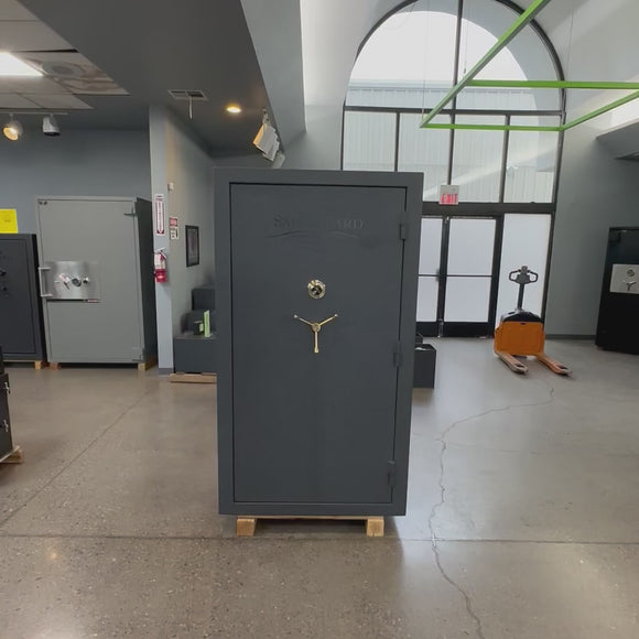 This used Champion GR45 Gun Safe measures 72" x 40.5" x 26", weights around 750lbs and has a 45 minute fire rating. Comes equipped with mechanical dial lock, 5 shelves inside and a door organizer.